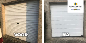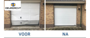 Deze situatie aan de Steigermesschen in Assen is het meest voorkomende werk wat we doen. De ongeïsoleerde en inbraakgevoelige ‘oude’ kanteldeur vervangen door de Hörmann